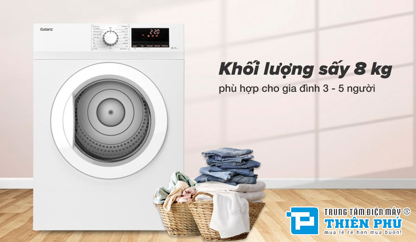 Máy sấy quần áo Galanz DV-80T5C(W) đáp ứng đầy đủ nhu cầu sấy quần áo đến 7 kg, phù hợp cho những gia đình có thành viên từ 2 – 3 người nhằm để xử lý nhiều quần áo mà không tiêu thụ nhiều điện năng và không mất thời gian sấy nhiều lần. Ngoài ra còn phù hợp với các căn hộ kinh doanh dịch vụ giặt ủi, nhà nghỉ, khách sạn..