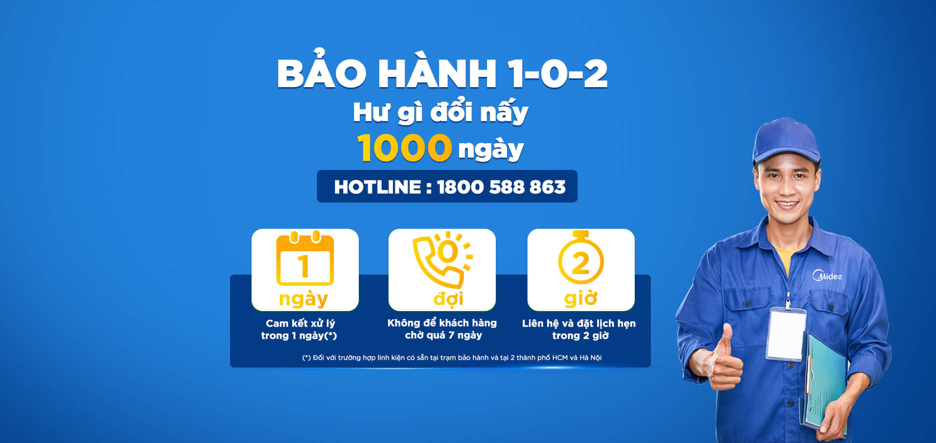 Năm 2024-2025 Midea đẩy mạnh phát triển khâu dịch vụ hậu mãi sau bán hàng 1 cách chuyên nghiệp, nhanh chóng hơn. Điều hòa nối ống gió Midea MTBA-18HRN1 được bảo hành chính hãng lên tới 24 tháng cho toàn bộ máy và 5 năm cho máy nén.