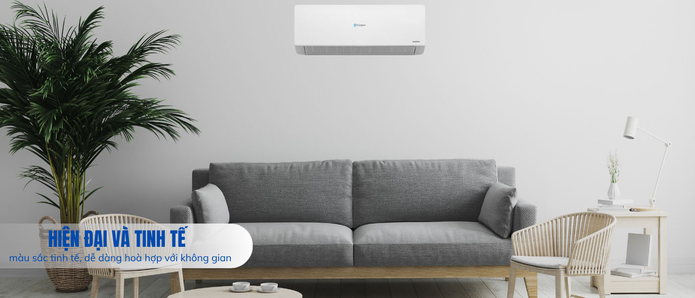 Điều hòa Casper QC-12IU36A sở hữu thiết kế dàn lạnh mang hơi hướng vuông vức, gọn gàng nhưng không hề khô cứng. Các chi tiết được tinh chỉnh khéo léo để tạo cảm giác chắc chắn, mạnh mẽ mà vẫn thanh lịch. Bề mặt trước của máy được phủ lớp vân xước kim loại độc đáo kết hợp với gam màu trắng xám trang nhã khiến sản phẩm dễ dàng hòa mình vào mọi không gian nội thất từ phòng khách hiện đại đến phòng ngủ tối giản.