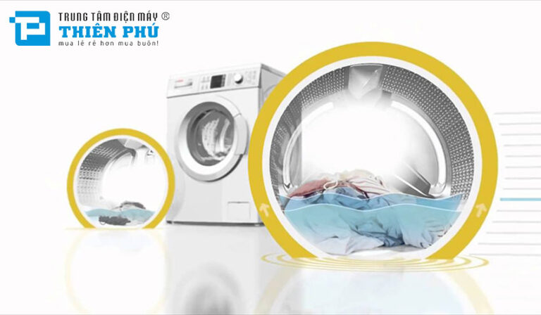 thêm vào đó thân máy được thiết kế độc quyền với các đường gân cách âm. Tạo thành cấu trúc ổn định cực kỳ chắc chắn. Nhờ đó, độ rung khi giặt và vắt giảm đáng kể. Giúp máy đứng vững, tránh xê dịch và đặc biệt là không gây tiếng ồn khó chịu. Tính năng này thực sự hữu ích với gia đình sống ở chung cư hoặc đặt máy trong không gian liền kề phòng ngủ.