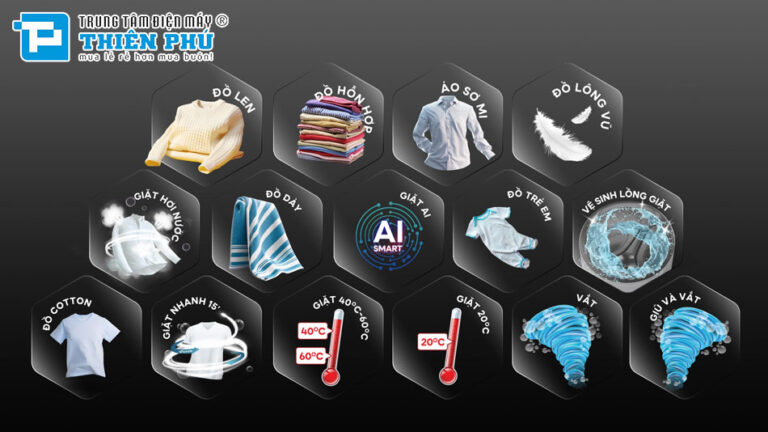 Sản phẩm không chỉ mang lại hiệu quả giặt sạch tối ưu mà còn tích hợp nhiều tính năng thông minh. Giúp việc giặt giũ trở nên nhẹ nhàng và tiện lợi hơn bao giờ hết.