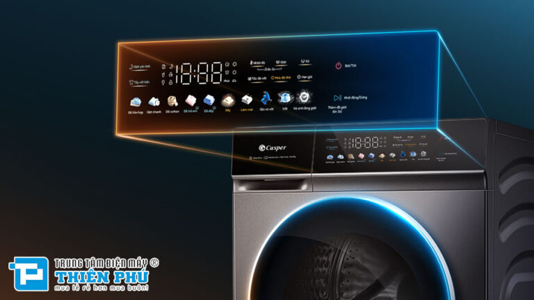Một trong những điểm mạnh nổi bật của máy giặt lồng ngang Casper WF-P115VGT11 chính là khả năng giặt 11,5Kg và sấy 8Kg. Phù hợp cho gia đình từ 4–6 thành viên hoặc những hộ có nhu cầu giặt nhiều quần áo trong một lần. Người dùng có thể dễ dàng giặt chăn mỏng, mền nhẹ. Rèm cửa hay quần áo dày mà không cần chia nhỏ nhiều mẻ giặt. Việc tích hợp sấy giúp quần áo khô ráo nhanh chóng, đặc biệt hữu ích trong những ngày mưa ẩm hoặc không gian phơi đồ hạn chế. Góp phần tiết kiệm đáng kể thời gian sinh hoạt hàng ngày.