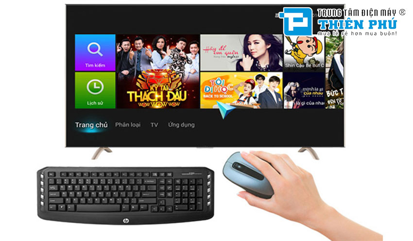 Khi cần đăng nhập tài khoản, nhập mật khẩu Wi-Fi hay tìm kiếm nội dung dài, bàn phím kết nối qua USB sẽ giúp bạn nhập liệu dễ dàng hơn nhiều so với việc bấm từng ký tự bằng remote. Chỉ cần kết nối bàn phím vào tivi, hệ thống sẽ tự nhận và cho phép sử dụng ngay mà không cần cài đặt thêm.