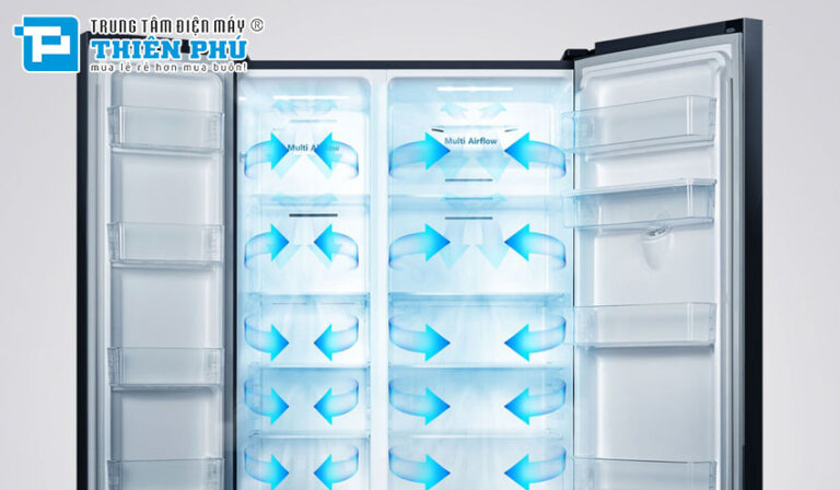 Ngoài ra tủ lạnh ngăn đá dưới Casper RS-460PG sử dụng hệ thống làm lạnh đa chiều. Giúp luồng khí lạnh được phân bổ đều đến mọi ngóc ngách bên trong tủ. Điều này đảm bảo thực phẩm luôn được làm lạnh đồng đều. Hạn chế tình trạng chỗ quá lạnh, chỗ lại không đủ nhiệt.