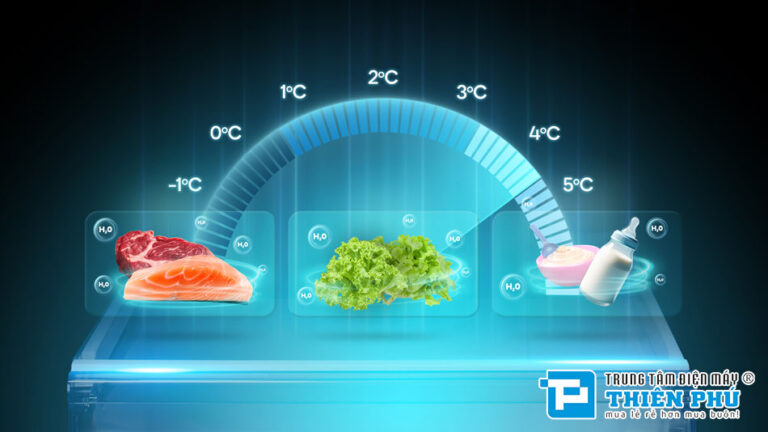 Nhờ vậy, thực phẩm ở mọi vị trí đều được làm lạnh nhanh và ổn định. Tránh tình trạng chênh lệch nhiệt độ giữa các khu vực trong tủ. Rau củ giữ được độ tươi giòn, thịt cá không bị khô, và đồ uống luôn mát lạnh sẵn sàng sử dụng