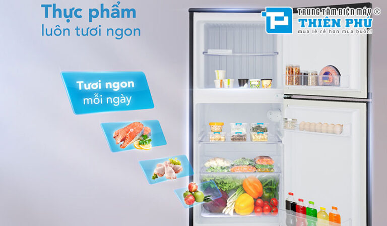 Ngoài ra, ngăn đá có khả năng làm đông nhanh hỗ trợ bảo quản thịt, cá hoặc làm đá viên cực kỳ hiệu quả. Ngăn mát có dung tích rộng rãi, trang bị kệ kính chịu lực. Cho phép bạn sắp xếp thực phẩm linh hoạt mà không lo bị vỡ hay cong vênh.