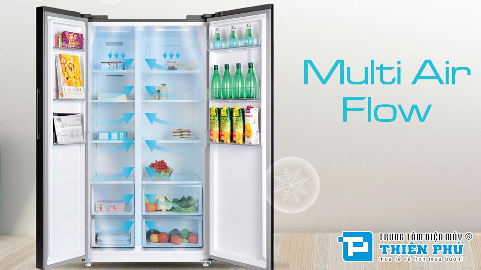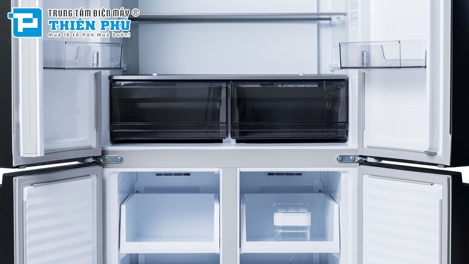Ngoài ra thiết kế nhiều cánh cửa giúp hạn chế thất thoát hơi lạnh khi mở tủ, từ đó tiết kiệm điện năng hiệu quả hơn. Đồng thời, người dùng có thể phân chia thực phẩm theo từng khu vực riêng biệt, tránh lẫn mùi và đảm bảo vệ sinh.