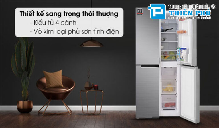 Ngoài ra không giống như các dòng tủ lạnh truyền thống, thiết kế 4 cửa giúp bạn hạn chế thất thoát hơi lạnh khi mở tủ. Bạn chỉ cần mở đúng khu vực cần lấy thực phẩm, từ đó tiết kiệm điện năng đáng kể. Ngoài ra, các ngăn được bố trí khoa học giúp việc phân loại thực phẩm trở nên dễ dàng hơn. Tránh lẫn mùi và đảm bảo vệ sinh. Dung tích lên đến 404 lít rất phù hợp cho gia đình từ 4–6 người hoặc những gia đình có nhu cầu lưu trữ thực phẩm lớn.