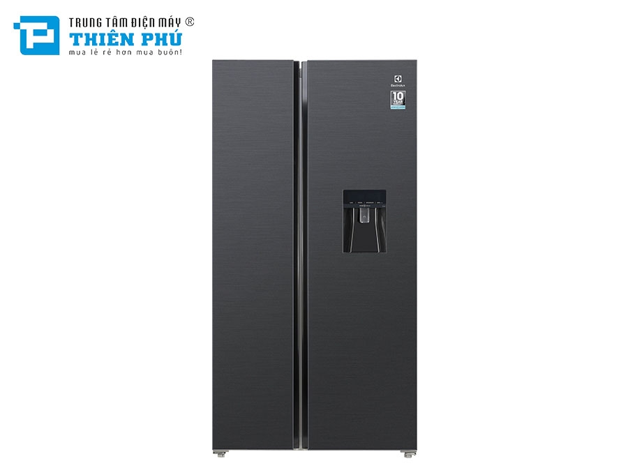 Tủ lạnh Electrolux Inverter 571 lít ESE6141A-BVN với thiết kế Side by Side hiện đại cùng gam màu đen huyền bí giúp không gian bếp của gia đình bạn thêm phần sang trọng, nổi bật. Bên cạnh đó, chất liệu cửa tủ được làm từ thép không gỉ có khả năng chống ăn mòn, chịu nhiệt độ cao khi sử dụng.